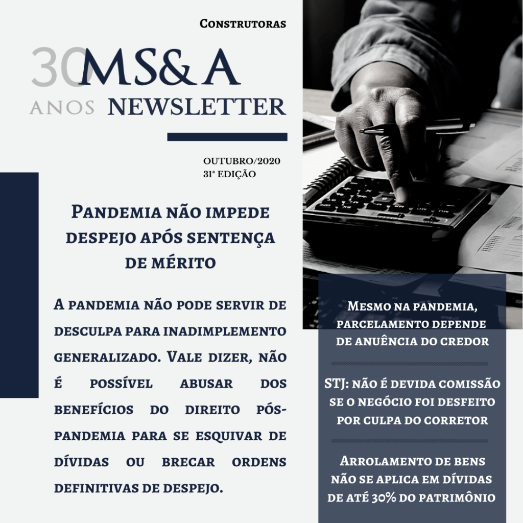 A pandemia não pode servir de desculpa para inadimplemento generalizado. A partir dessa ideia, os Desembargadores da 33ª Câmara de Direito Privado do TJSP negaram provimento a pedido de suspensão integral de ação de despejo em imóvel comercial. “O art. 9º da Lei 14.010/2020 invocado pela agravante trata de despejo liminar, o que já foi […]
